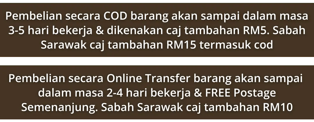 Untuk Sabah & Sarawak , sila semak rate shipping di Checkout page.